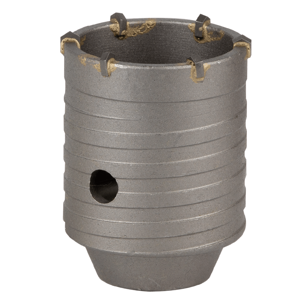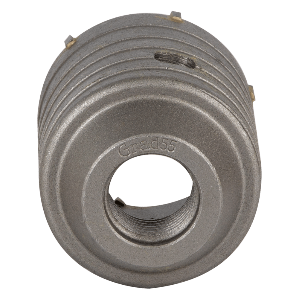 Коронка по бетону Ø55×70мм 6 зубців (тубус) GRAD (1514065) призначена для ударного свердління отворів в бетоні, цеглі, камені, твердих вапняках. Використовують з дрилями і перфораторами потужністю не менше 850 Вт.