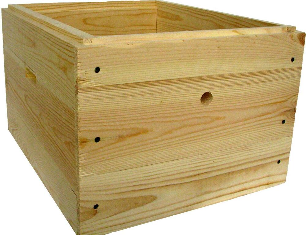 Корпус 10 рамковий під даданоську рамку. Габаритні розміри 520х445х320 мм. Внутрішні розміри 450х375х310 мм. Виготовлений із сосни товщина стінки 35 мм. Стіни корпусу склеєні в щити на вологостійкий клей класу D3, і зібрані на шурупи. Завдяки чому корпус даданівського вулика можна легко розібрати і зібрати, що зручно при транспортуванні нашим корпусів клієнтам.