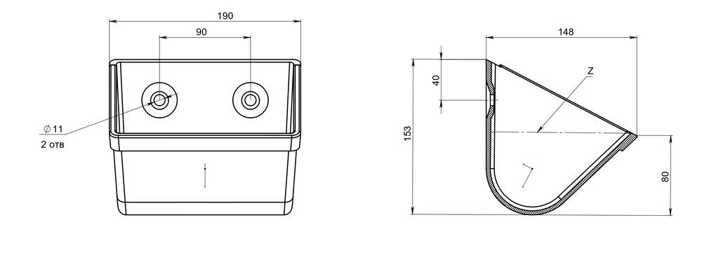Ширина - 190 мм, Виліт - 148, висота - 184