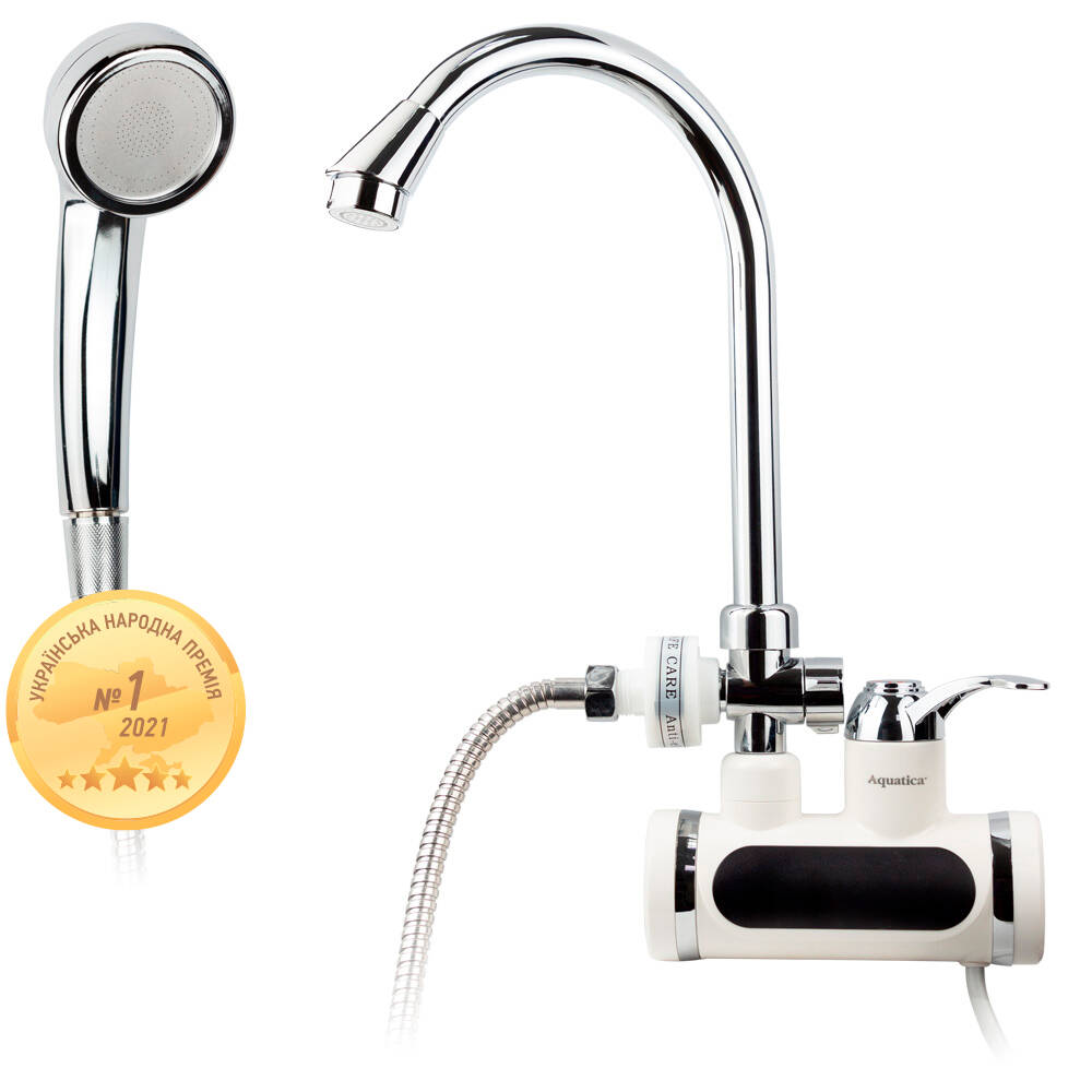 Цей проточник складається з білого термостійкого корпусу з нагрівальними елементами всередині і цифровим дисплеєм зовні. Регулювання температури і напору струменя здійснюється за допомогою невеликого важеля. Вилив J-подібний, поворотний, на «носику» встановлено аератор. У комплект також входить шланг з душовою лійкою на 2 режиму і кронштейн.