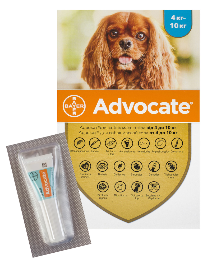 Краплі Адвокат собак від 4 до 10 кг №1 BAYER - золотий стандарт контролю паразитів у собак (ціна за упаковку).