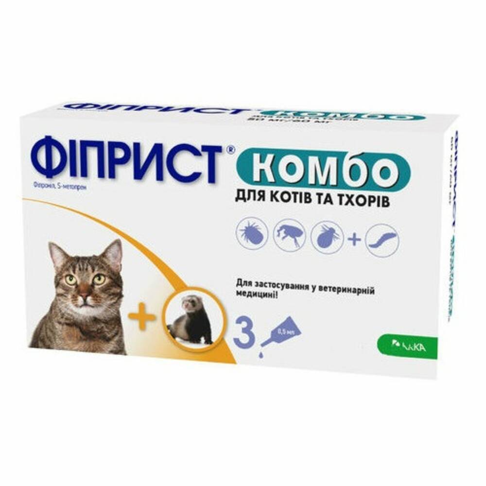 Одна піпетка ємністю 0,5 мл для кішок і тхорів відповідає