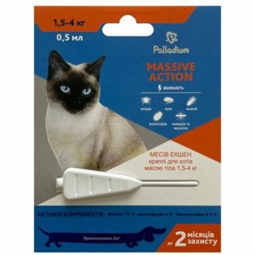 Краплі Паладіум на холку від бліх і кліщів Palladium Massive Action для котів 1,5-4 кг 1 мл антипаразитарні