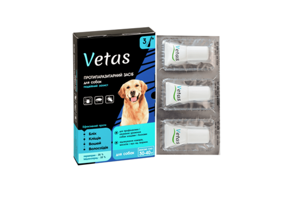 Краплі Ветас для собак 30-40кг інсектоакар. 6мл №3