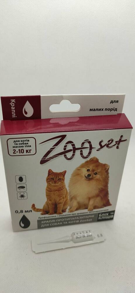 Краплі Zooset протипаразитарні для собак та котів 2-10кг піп. 0,8мл №4