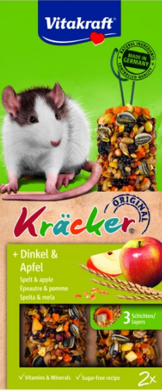 Крекер для щурів Vitakraft Kracker містить зерно та фрукти.