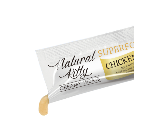 Natural Kitty Creamy Treats Chicken & Pumpkin - це неймовірно смачні крем-ласощі для котів, які виготовлені зі 100% натурального курячого м'яса з додаванням гарбуза, який має ряд корисних властивостей. Ласощі для котів Натурал Кітті – найкраща щоденна нагорода для ваших котів! Їх можна давати як заохочення, перекушування або для покращення привабливості основного корму.