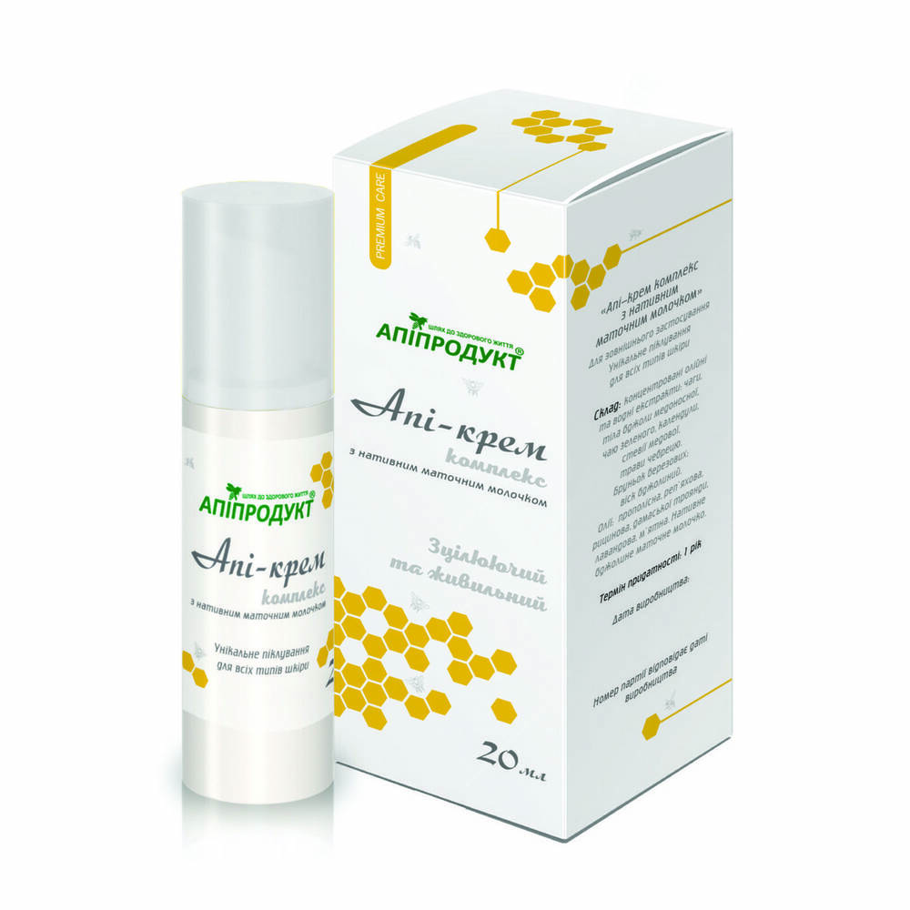 Апі-крем комплекс від компанії Апіпродукт це дивовижний крем, який має вершкову текстуру та містить збалансований комплекс лікарських трав і біологічно активні унікальні речовини, особливо нативного маточного молочка та чаги.