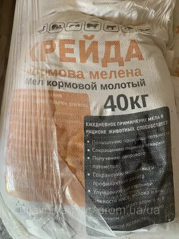 Крейду кормову природну мелену застосовують тваринам і птиці всередину в суміші з сухими кормами