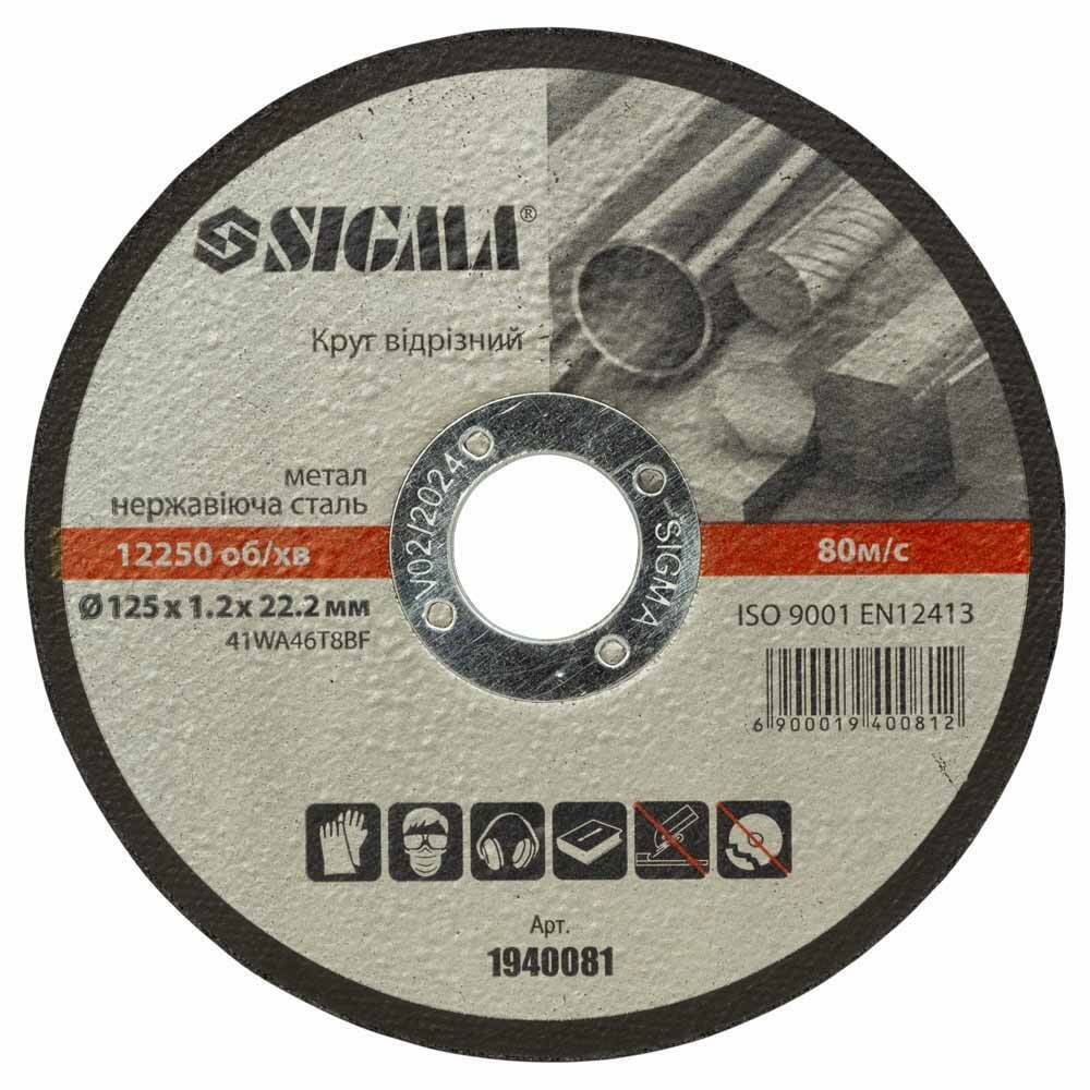 Круг відрізний по металу та нержавіючої сталі Ø125×1.2×22.2мм, 12250об/хв SIGMA (1940081)