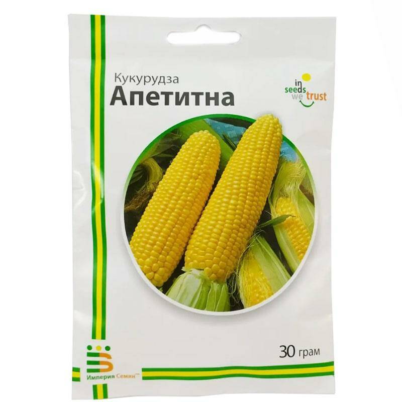Кукурудза Апетитна - це швидкостиглий сорт, вегетаційний період якого, від сходів до технічної стиглості 75-80, до біологічної 100-112 днів. Рослина середньоросла (176-186см), тонкостебельна, малообліственне. Початки середньої величини, циліндричні, довжиною 18,5 см. Стрижень білий, зерно широке, коротке, інтенсивного забарвлення. Середня маса качана 216-222 грамів. Смакові якості високі. Використовується для консервування і свіжого ринку.