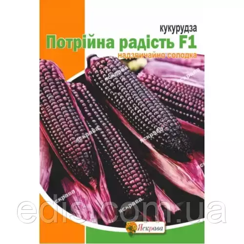 Кукурудза Потрійна Радість F1 — сучасний ранньостиглий гібрид цукрової кукурудзи, який поєднує відмінний солодкий смак, високу врожайність і екзотичний темний колір зерен.