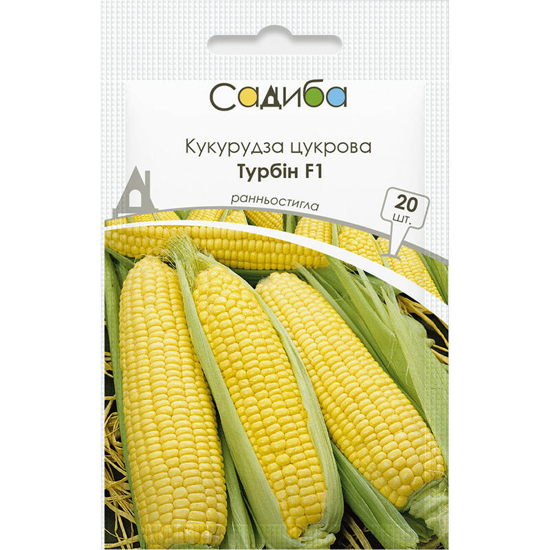 Турбін F1 – дуже ранній гібрид суперсолодкої кукурудзи. Вегетаційний період 70-72 дні. Рослини міцні, збалансовані, висотою 170-175 см. Формує качани завдовжки 20-22 см, відмінно вкриті покривними листочками. Діаметр качана 5,0-5,5 см, має по 16-18 рядів зерен. Відмінний солодкий смак, висока товарність. Гібрид підходить як для отримання ультраранньої продукції, так і вирощування в конвеєрі. При вирощуванні суперсолодкої кукурудзи обов’язково потрібно дотримуватись просторової ізоляції від зернової та цукрової!