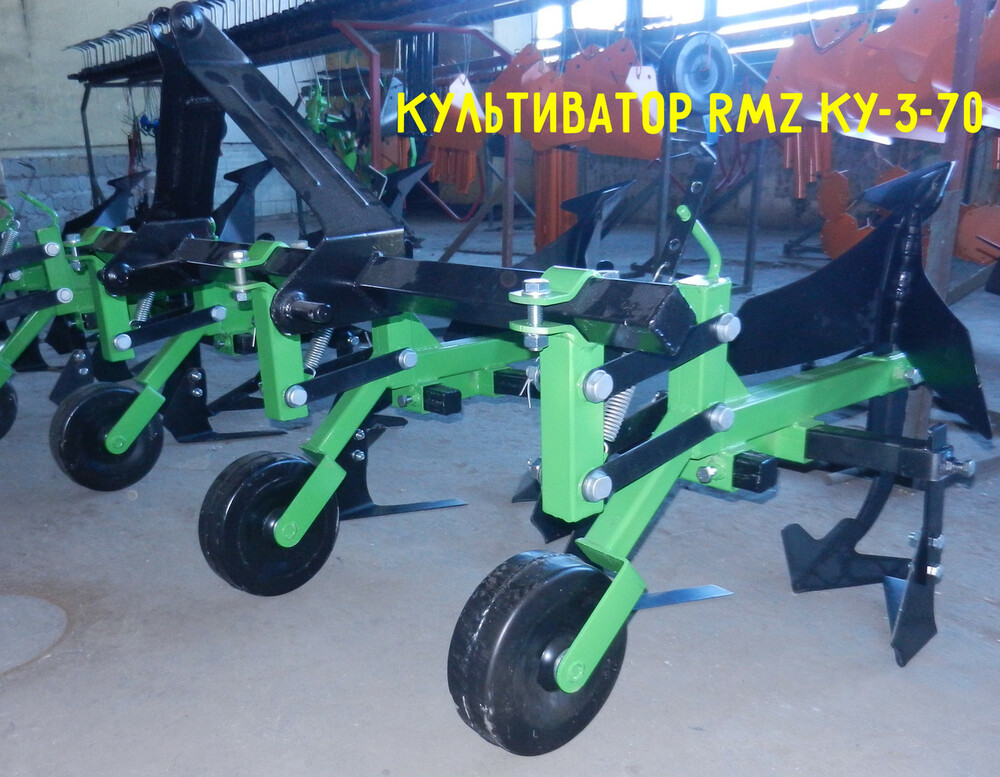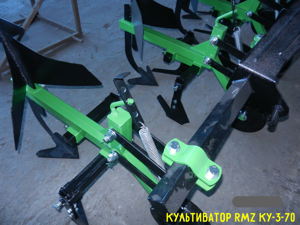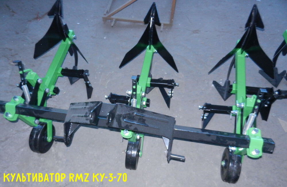 Культиватор РМЗ КУ-3-70, выполняется полный комплекс обработки культуры (рыхление, пропалывание, окучивание). Культиватор РМЗ КУ-3-70 - формирует гряды до 60 см. как окучник и может пропалывать ножами - бритвой междурядья.