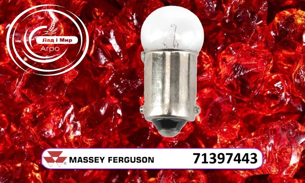Лампочка 71397443 до Massey Ferguson Massey Ferguson Limited крупний американьский виробник сільхозтехніки та обладнання. Входе до компанії AGCO. В даний час Massey Ferguson - це тільки назва бренду, що використовується AGCO, але техніка Massey Ferguson залишається найбільш широко продається в усьому світі, а популяція функціонуючих тракторів під цим брендом налічує більше 5,2 мільйонів. Ви можете замовити агрозапчастини Лампочка 71397443 до Massey Ferguson від на нашому сайті ladimiragro.com.ua. Якщо у Вас виникли додаткові запитання по запчастині Лампочка 71397443 до Massey Ferguson. Ви можете зателефонувати за телефонними номерами. Всі номери вказані на сайті ladimiragro.com.ua. Наші фахівці мають великий досвід. Вони нададуть всю вичерпну інформацію на агрозапчастини до техніки John Deere. Також в разі випадку, запропонують альтернативу. Це можуть бути інші агрозапчастини до сільгосптехніки таких відомих виробників як John Deere, Claas,  New Holland, Challenger, Fendt, Great Plains, Horsch, Case, Kinze, Massey Ferguson. Компанія "Лад і Мир агро" - це Ваш надійний партнер. Ми зробимо все можливе і неможливе. Ми якомога швидко доставимо до Вас Лампочка 71397443 до Massey Ferguson в найкоротший термін. Ми співпрацюємо з усіма перевізниками по всій Україні. Переглянути інші товари виробника Massey Ferguson  на нашому сайті. Лад і Мир Вашому господарству! Компанія «Лад і Мир Агро» є надійним партнером для сільськогосподарського виробника для замовлення оригінальної запчастини на сільськогосподарську техніку. Головним принципом є надання професійної підтримки і забезпечення потреб в запасних частинах для агротехніки для кожного клієнта нашої компанії. У нас ви можете замовити оригінальні агрозапчастини від таких відомих виробників, як Claas, Challenger, Fendt, Great Plains, Horsch, John Deere, Kinze, Massey Ferguson та інших. Для цього можете перейти до нашого каталогу – агрозапчастини Команда «Лад і мир агро» - це надійний партнер, який пройде з Вами шлях протягом усього періоду експлуатації, забеспечуючи якісне постачання запасних частин для імпортної техніки.