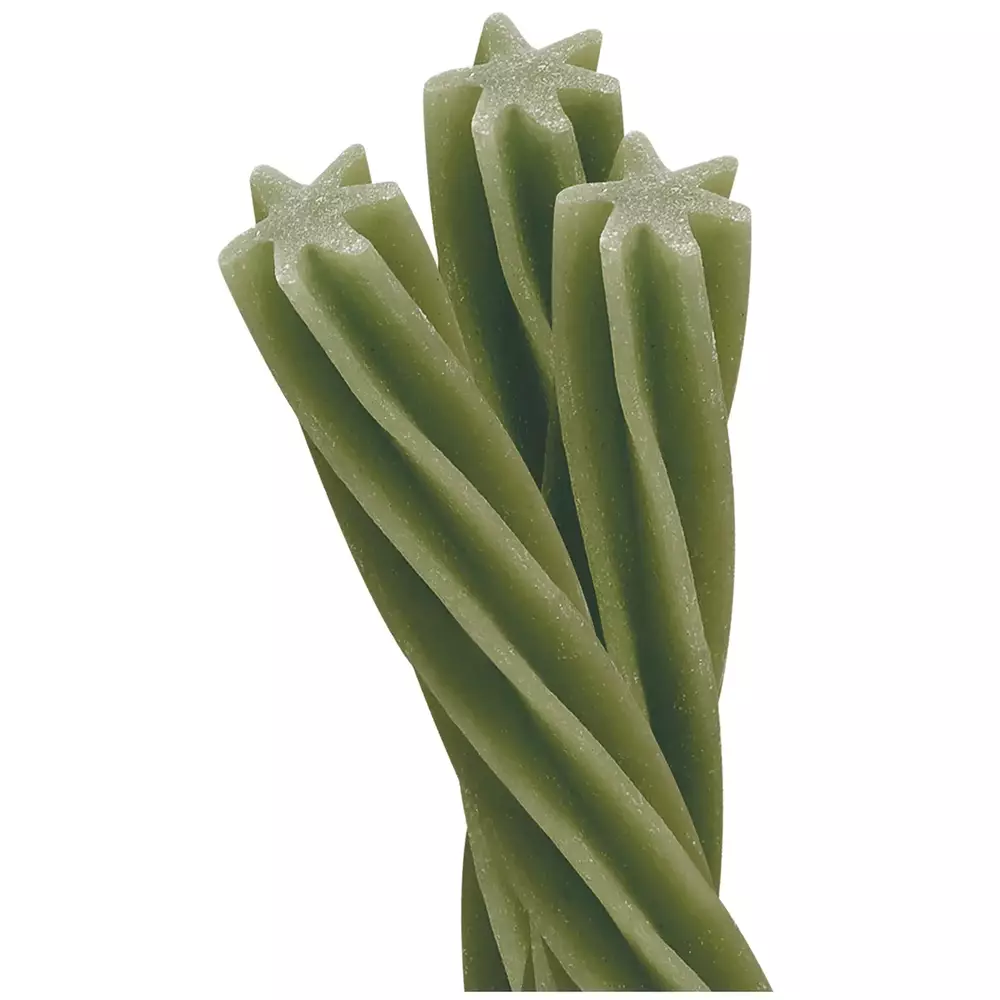 Смачні палички для догляду за зубами з м’ятою — ще й додатковий корм для собак. Мають інноваційну комбінацію активних речовин 3-в-1: Stay Clean™, що зменшує ріст бактерій, протидіє утворенню зубного нальоту, та допомагає уповільнити розвиток зубного каменю. Цинк запобігає запаленню ясен і сприяє загоєнню ран у ротовій порожнині. А м’ятна олія — освіжає подих собаки. Рецепт без цукру.