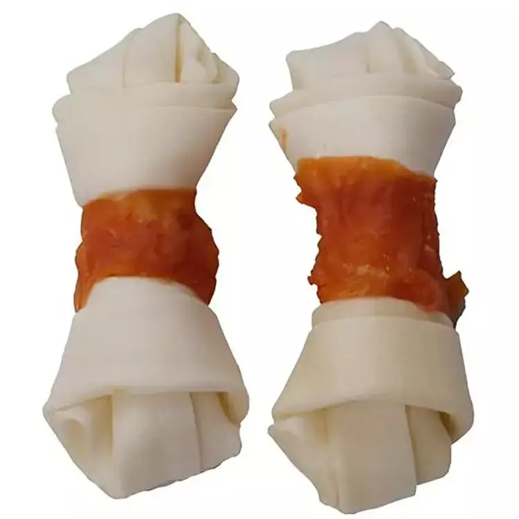 Ласощі для собак Вузлові кістки із сиром'ятної шкіри з курячим м'ясом для собак 500 г