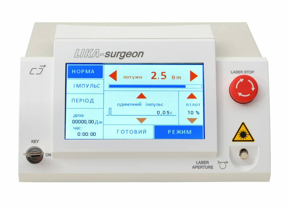 Додаткові аксесуариДіодний хірургічний лазер LIKA-surgeon комплектується лазерними захисними окулярами для гарантування безпеки роботи хірурга та пацієнта. Хірургічний діодний лазер може додатково комплектуватися мобільною стійкою для зручного розміщення апарата, з поличкою для інструментів та стійкою колісною базою, що суттєво спростить роботу в операційній. Лазер LIKA-surgeon додатково може бути укомплектований індикатором потужності ІМ-3 портативного типу з окремим приймачем. Цей прилад дає можливість вимірювати потужність лазерного променя в широкому спектральному діапазоні, має автономне живлення. |