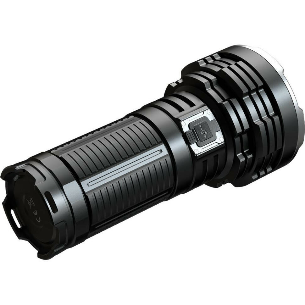 У боці корпусу знаходиться невелика заглушка, що закриває два USB порти. Один порт (Type-C, вхідний) призначений для заряджання акумуляторного блоку ліхтаря, що займає близько 4-х годин, а другий порт (USB-A, вихідний) підходить для заряджання сторонніх приладів. Завдяки функції Power Bank модель особливо корисна у польових умовах, коли необхідно підтримувати рівень заряду смартфона або іншої техніки, але немає доступу до домашньої електромережі.