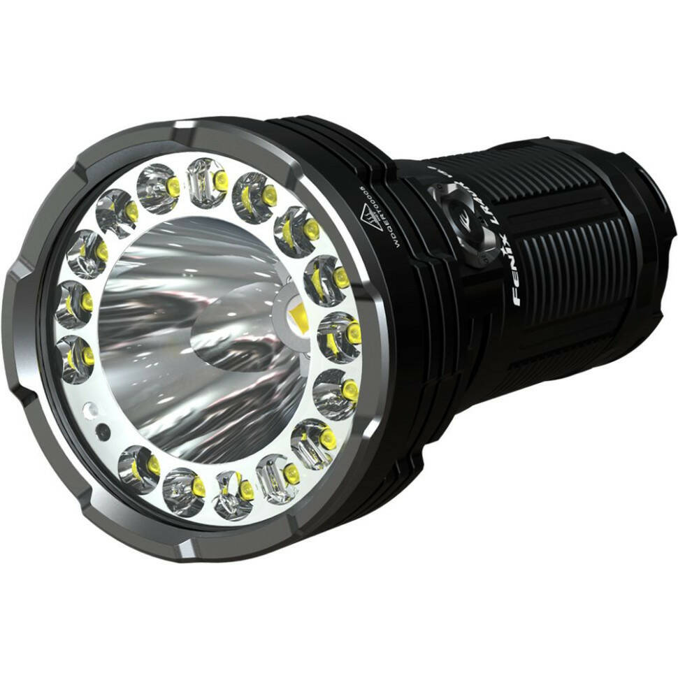 Пошукова модель LR40R V2.0 від Fenix виділяється не тільки яскравістю світла та великим набором режимів, а й відчутно компактнішими габаритами у порівнянні з освітлювальними пристроями аналогічного типу від інших виробників. Ліхтар можна утримувати однією рукою, і при цьому його функціонал вражає наявністю цілих сімнадцяти світлодіодів (1 x Luminus SFT70, 16 x Lumileds HL2X), які генерують над’яскравий світловий потік до 15 000 люмен.
