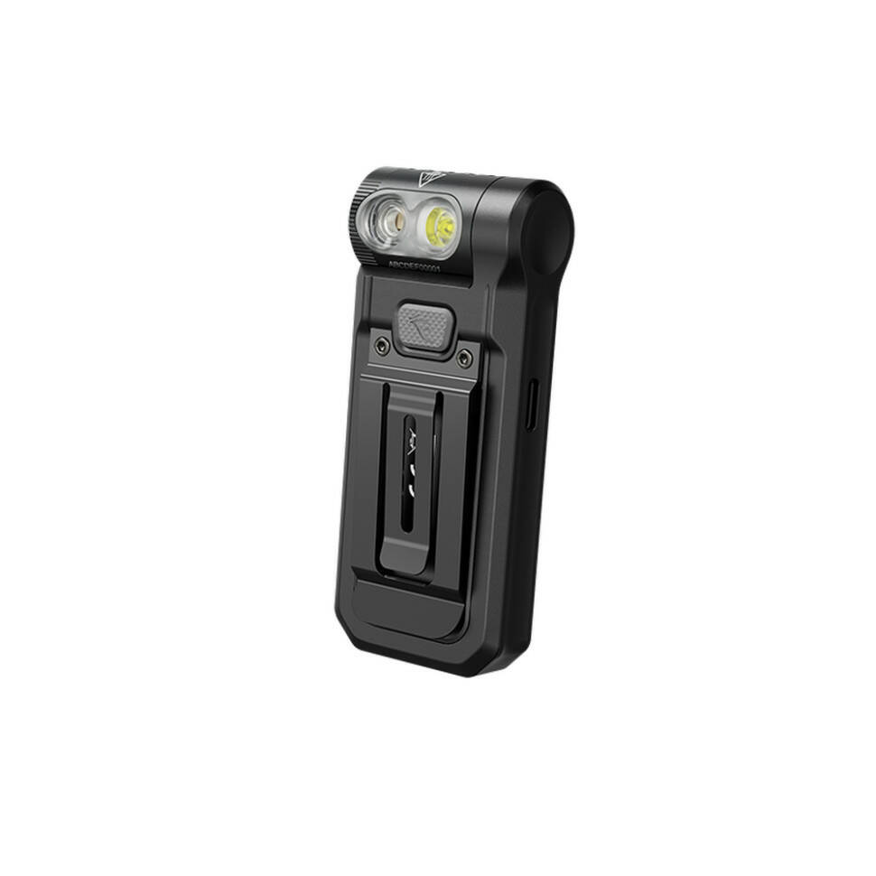 Нахил головної частини корпусу регулюється на 200°, дозволяючи виставляти промінь у зручному для вас напрямку. Подвійний затискач підвищує функціональність пристрою: ви можете кріпити його до козирка кепки, лямки рюкзака, кишені одягу або пояса. У хвіст вбудовано магніт для фіксації конструкції на металевій поверхні.
