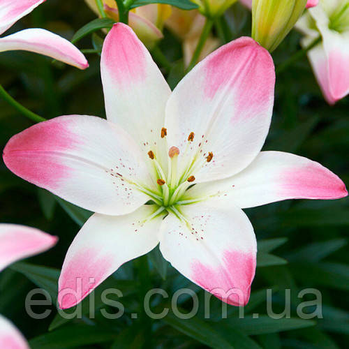 окраска бутона: бело-розовая лилия;