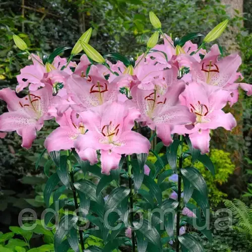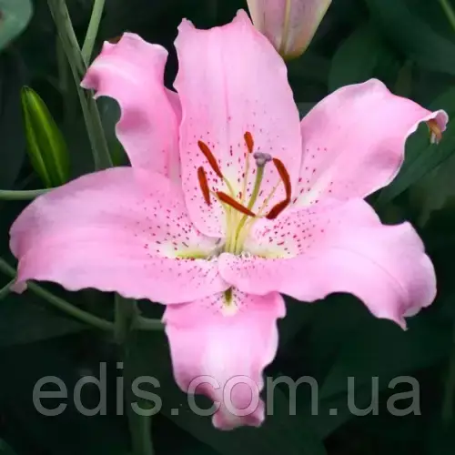 колір: ніжно-рожевий з білими смугами та помаранчевими пильовиками;