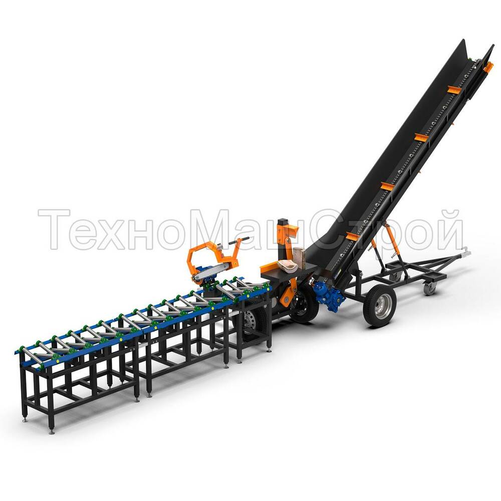 Лінія розколювання дров складається зі стаціонарного та мобільного обладнання для розпилювання "дров-кругляка" з подальшим подрібненням та завантаженням на автомобільні причепи. Оснащена роликовим конвеєром, стаціонарною пилкою ВіРК-25, рейковим дровоколом ДРМ-50 і конвеєром для завантаження дров, вона утворює повну лінію для заготівлі дров.