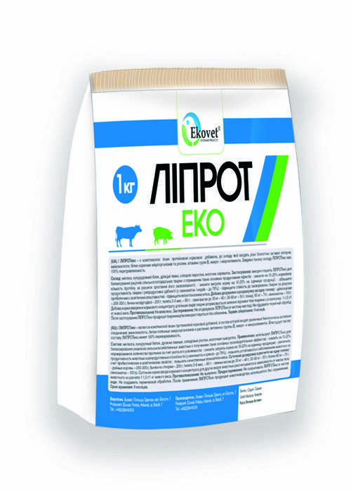 ЛІПРОТеко - є комплексною лізин протеїновою кормовою добавкою, до складу якої входять різні біологічно активні сполуки: амінокислоти, білки корисних мікроорганізмів та рослин, вітаміни групи В, макро- і мікроелементи. Завдяки такому складу ЛІПРОТеко має 100% перетравлюваність.