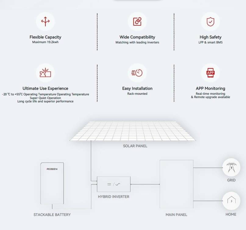 Високовольтний акумулятор для зберігання енергії літій-залізо-фосфатний LiFePO4. Вбудована інтелектуальна система BMS (battery management system - система управління акумулятором) яка ефективно запобігає перезаряду, перерозряду, перенапрузі, короткому замиканню, перевищення температури, низької температури та іншим проблемам.