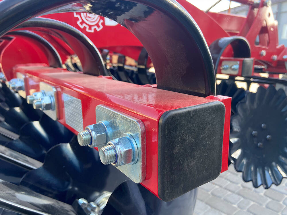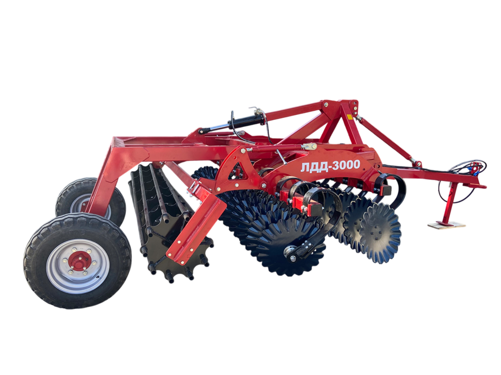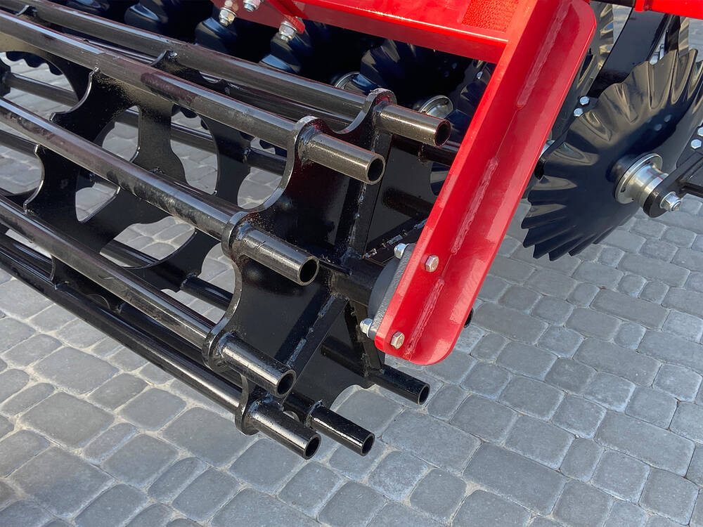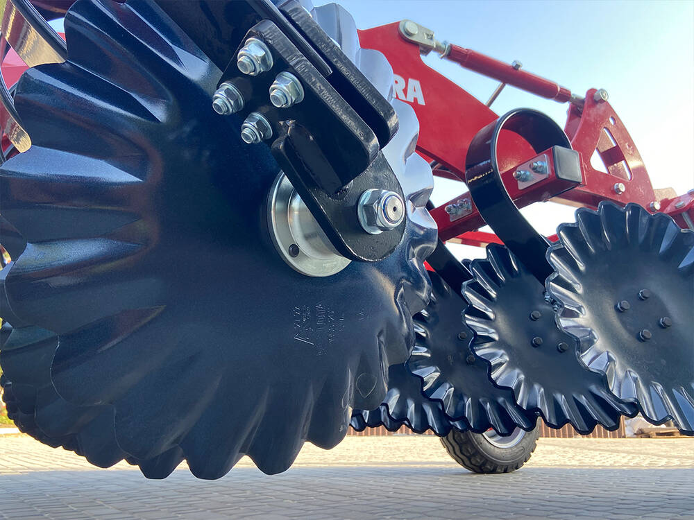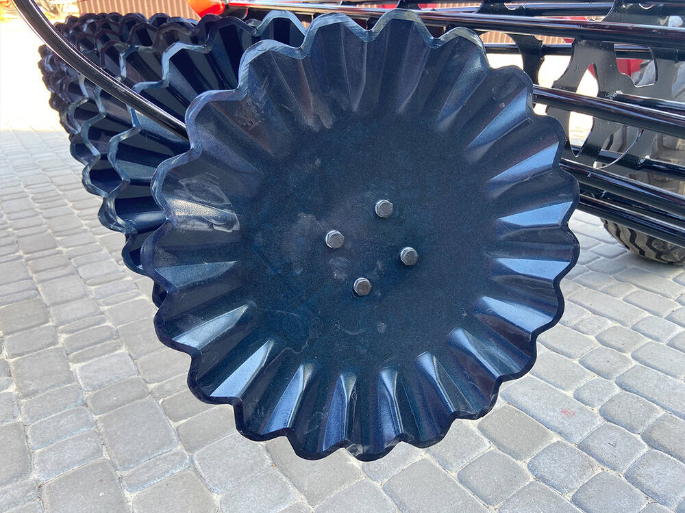 Завдяки наявності транспортного пристрою є можливість встановлювати навісну сівалку позаду лущильника, що дозволяє одночасно проводити висів зернових культур та внесення мінеральних добрив.
