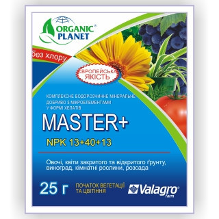 Добриво Майстер Старт + NPK 13-40-13 — спеціально розроблений комплекс мінералів і мікроелементів (у формі хелатів) для підживлення городніх і садових рослин у період їх активного росту. У складі добрива є: азот, оксид фосфору, оксид калію, магній, залізо, мідь, марганець, бор, цинк, молібден. Майстер Страт застосовується як для обприскування, так і для поливання (дощання, крапельне зрошення).