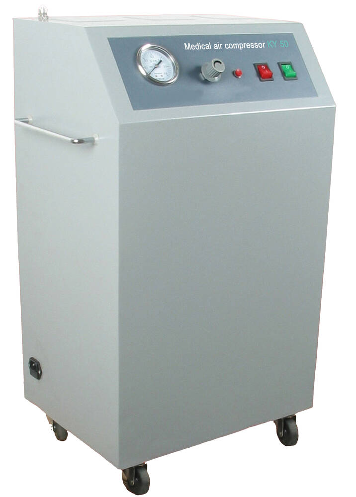 Медичний повітряний компресор застосовується для подачі стисненого медичного повітря у вентилятори для реанімації та в наркозні апарати.