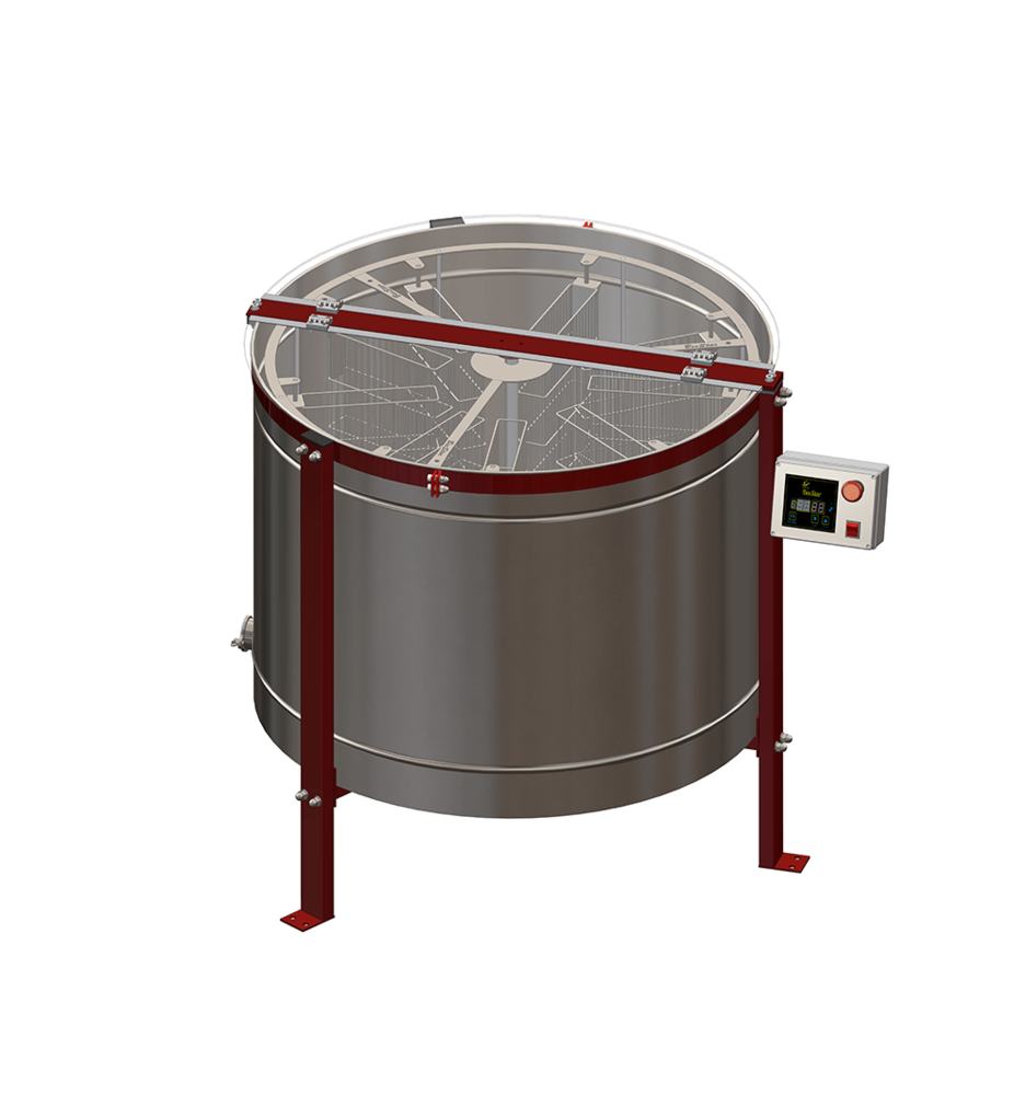 У дію медогонку приводить мотор-редуктор з плавним регулюванням набору оборотів.