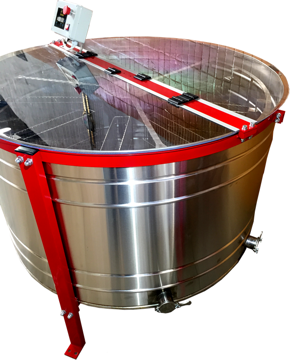 У дію медогонку приводить мотор-редуктор з плавним регулюванням набору оборотів.