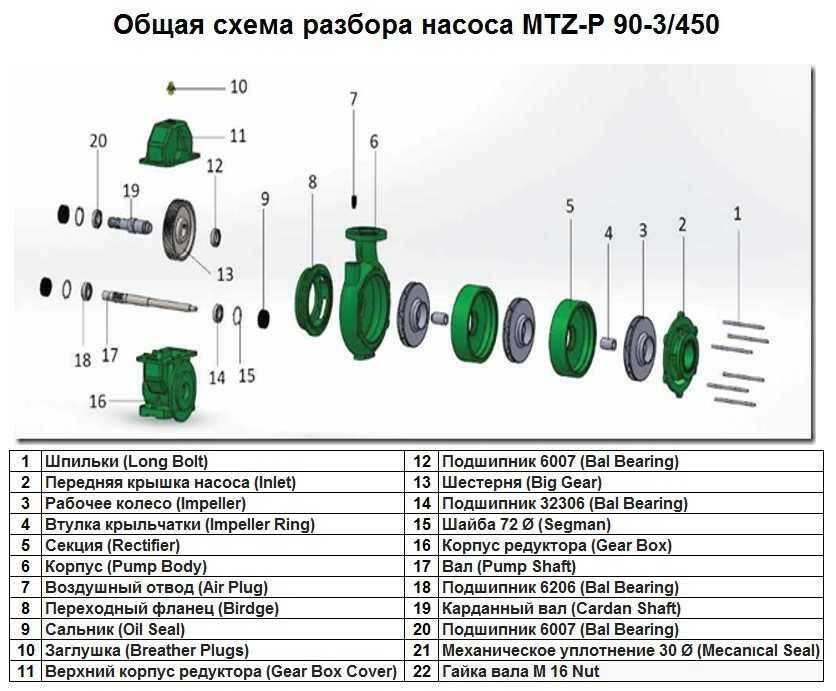 Загальна схема насоса MTZ-P 90-3 / 450: