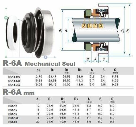 Механічне торцове ущільнення (сальник) R-6А використовується при температурах від -20 до + 100°С, з тиском до 0,3 МПа і швидкістю обертання до 5000 об/хв.