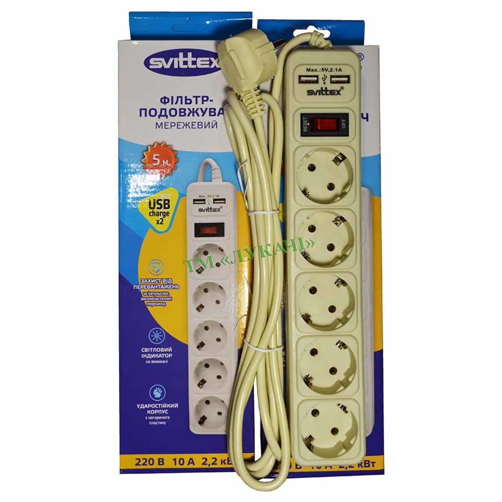 Мережевий фільтр Svittex SV-025 + USB 5м