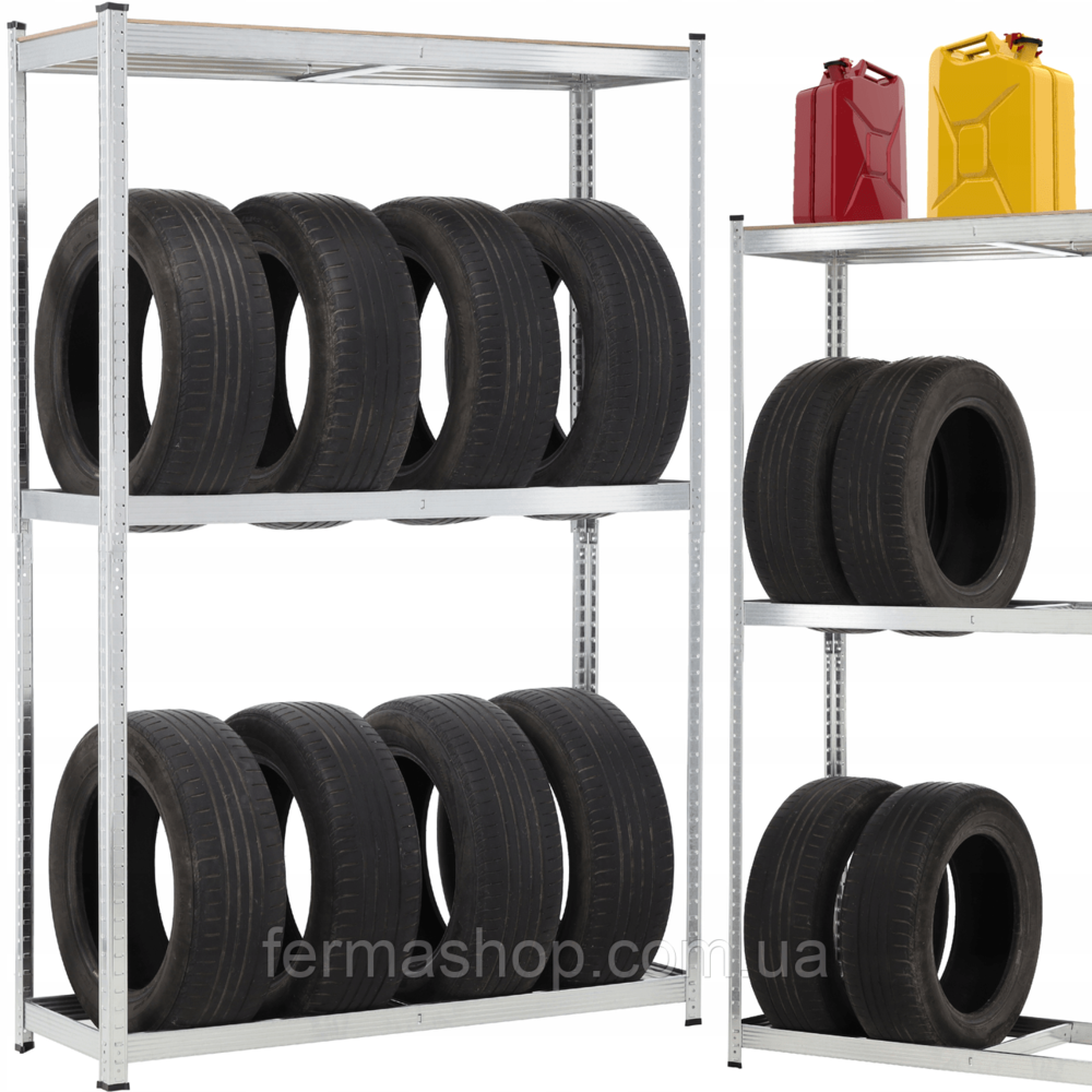 Металлический стеллаж для 8 шин с дополнительной полкой Garden Line (180×120×40 см) | нагрузка на 1 полку –