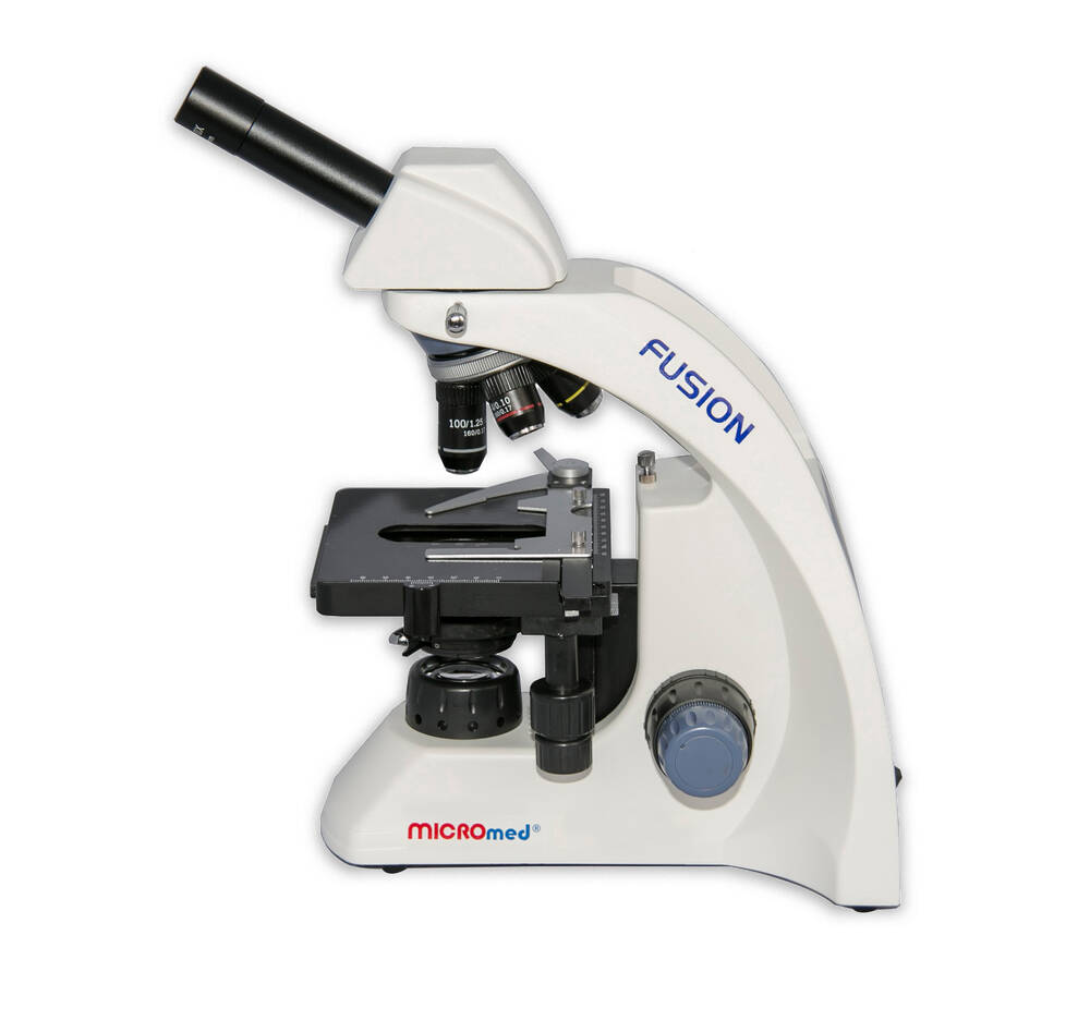 Мікроскоп біологічний Fusion FS-7510 MICROmed монокулярний, обладнаний високоякісними ахроматичними об'єктивами. Область застосування мікроскопа FS-7510 MICROmed дослідного класу - проведення поглиблених морфологічних досліджень методом світлого поля в прохідному світлі з метою отримання точних даних досліджуваного матеріалу. Використовується в лабораторіях медичного та науково-дослідницького напрямку (біохімія, патологоанатомія, цитологія, гематологія, урологія, дерматологія та ін.) для проведення різного роду досліджень, без яких у наш час не обходиться жодна лікувально-діагностична процедура.