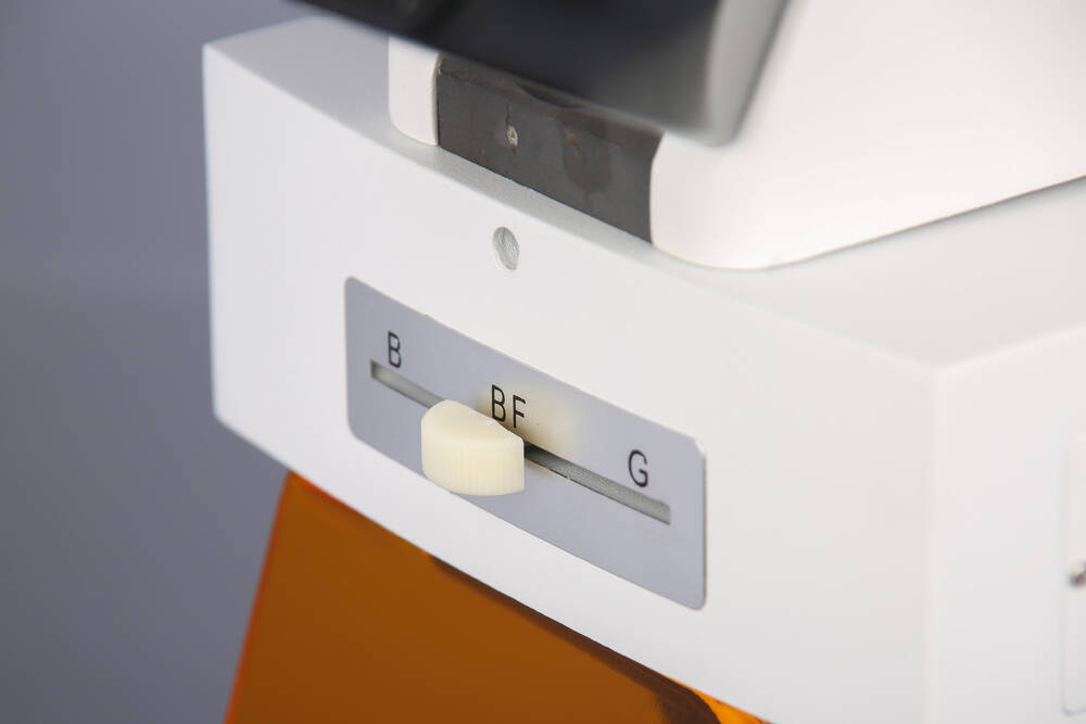 • У блоці освітлювача передбачена система фільтрів, що включає 1 фільтр збудження В (блакитний); N (прохідне світло) і 2 відтинаючі фільтри.