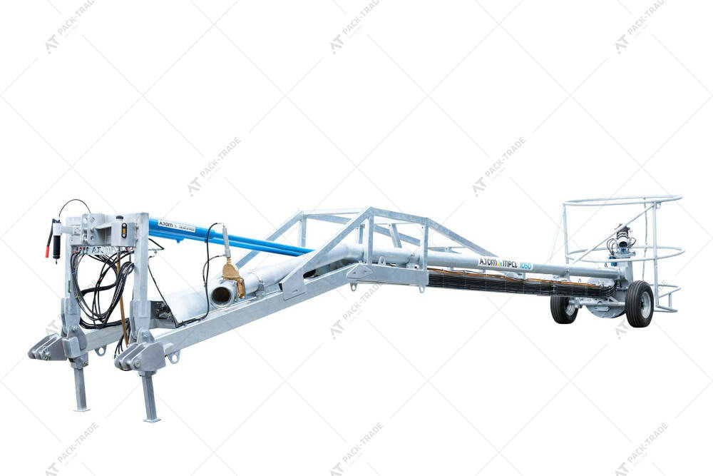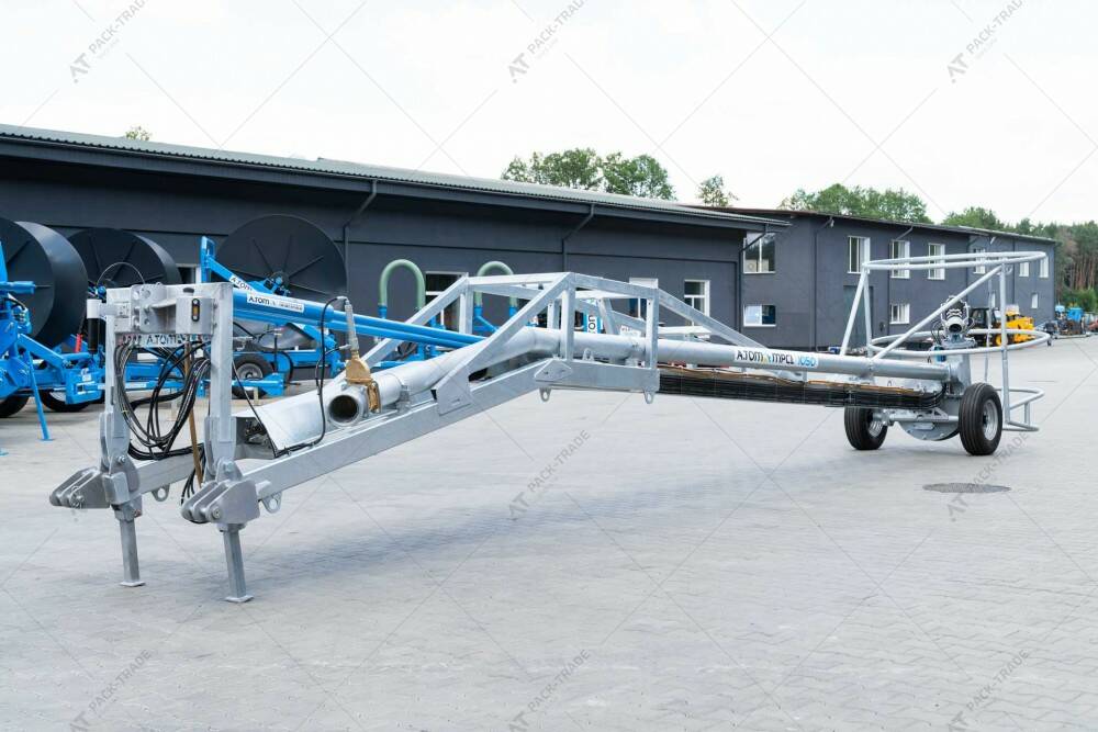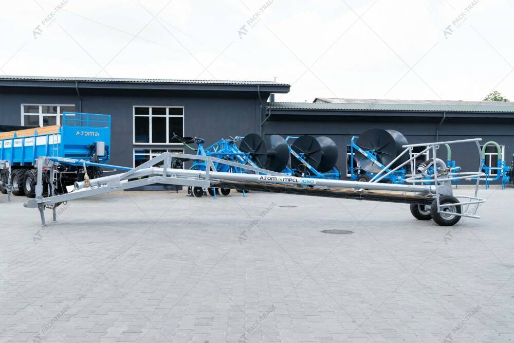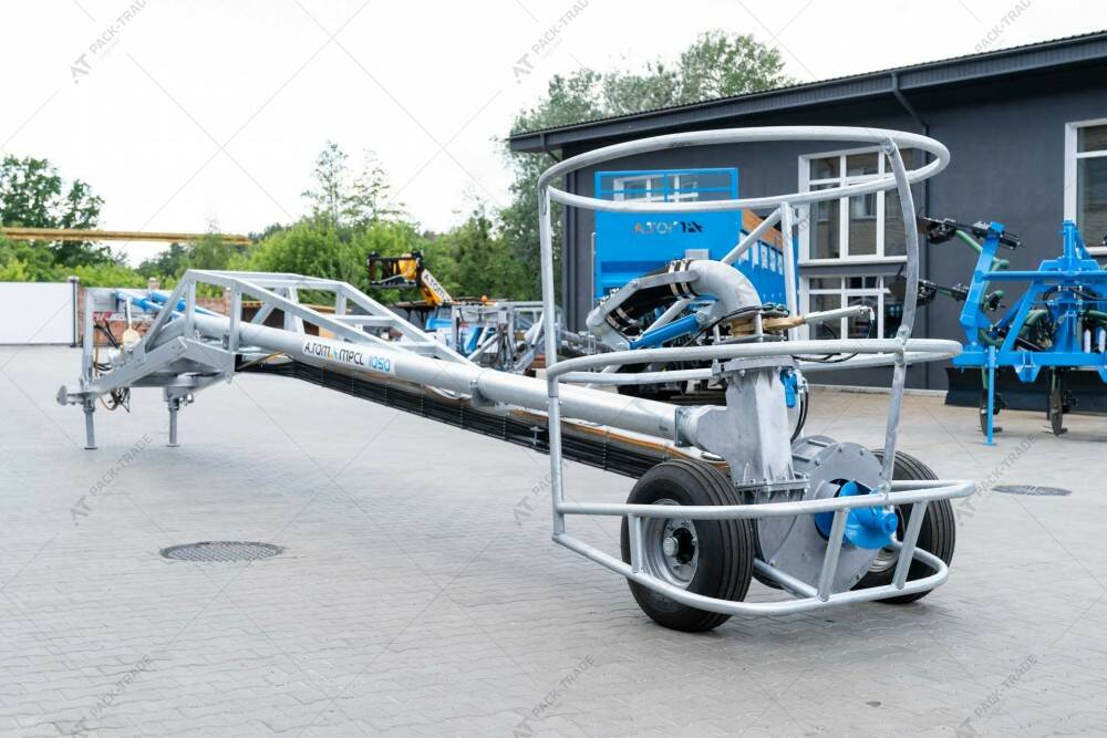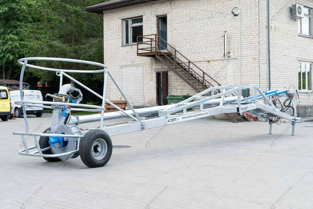 Міксер насос для закритих лагун MPCL 950, ТМ «А.ТОМ» для перемішування в лагунах і викачування рідкого гною в бочки. Довжина – 9,5 м. Обсяг перемішування з однієї точки – до 20000 м³, Працює від ВВП трактора. Споживана потужність – від 170 к.с., 1000 об./хв. Вага міксера – 1660 кг. Оцинкована конструкція. Гумові колеса.