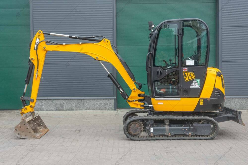 Міні екскаватор б/в JCB 8026 CTS, 2022 р/в, з напрацюванням 656 м/г. Габаритна висота 2,45 м. Двигун 18,9 кВт. Гусениці 300-52,5-78. Вага 2927 кг.