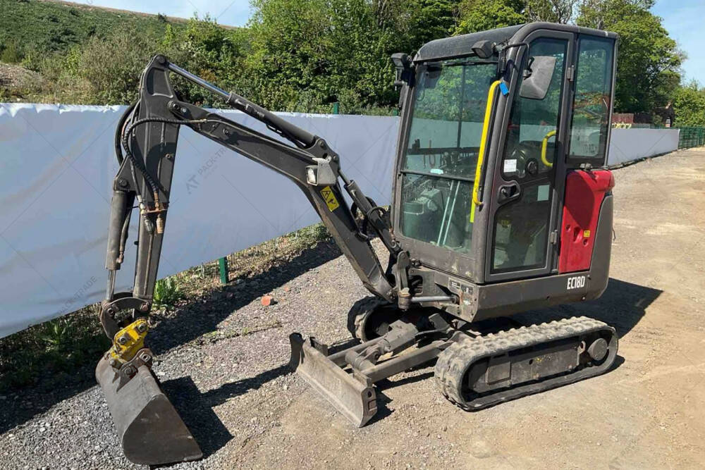 Міні екскаватор Volvo EC18D 2018 р. Напрацювання 1822 м/г. Двигун — 12 кВт. Загальна висота — 2,4 м. Розмір гусениці: 230х96х33 см. Стріла — Standart. Швидкоз'єм, ківш планувальний 90 см. Кабіна, робоче освітлення. Глибина копання — 2,097 м.
