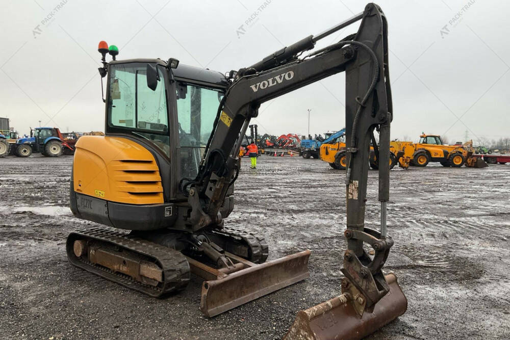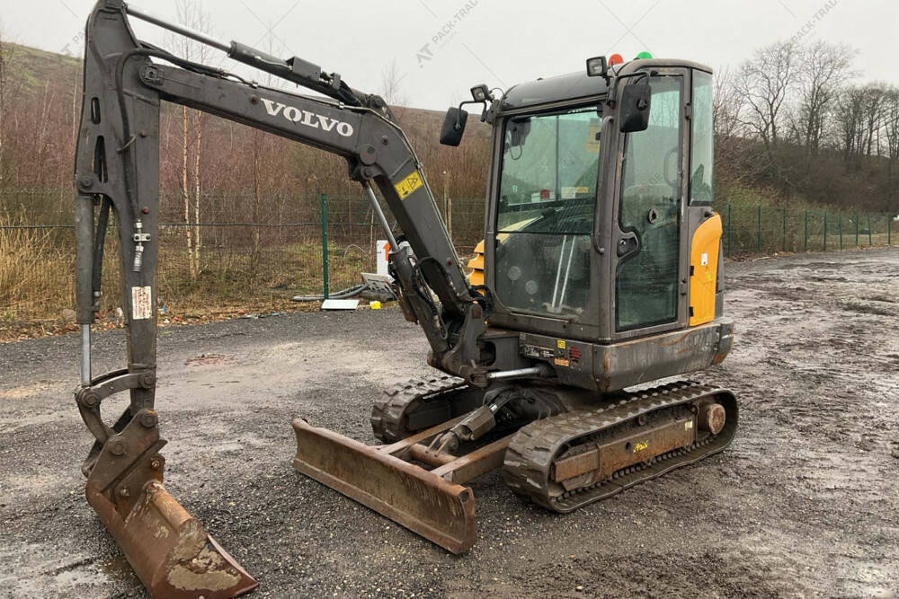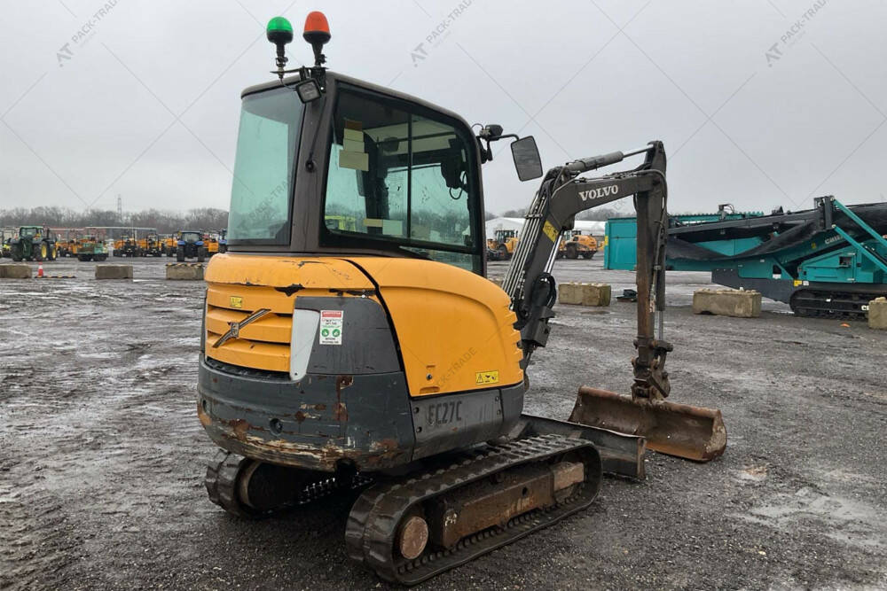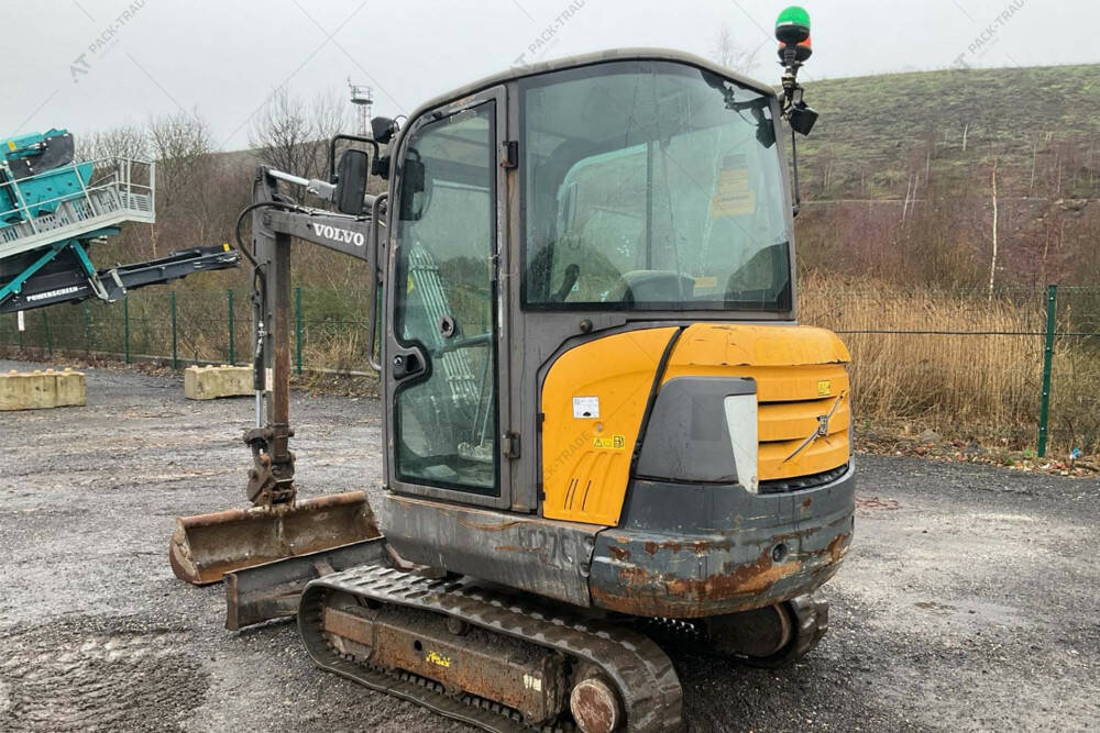 Екскаватор б/в VOLVO EC27C, 2015 р/в, з напрацюванням 4603 м/г. Двигун — 20,4 кВт. Загальна висота — 2,45 м. Вантажопідйомність 1084 кг. Розмір гусениці: 300 х 52,5w х 78 см. Стріла — Standart. Швидкоз'єм, ківш 1,3 м. Кабіна, робоче освітлення. Глибина копання — 2,51 м.