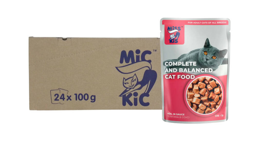 Мис Кіс вологий корм для кішок з телятиною в соусі 100 г (блок 24 шт)