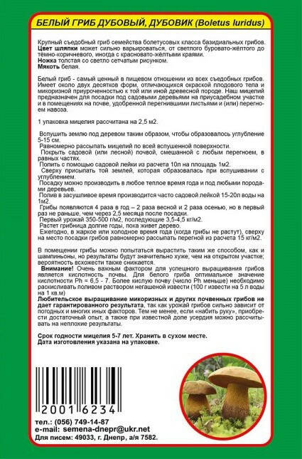 Міцелій Білий гриб дубовик, 10 г