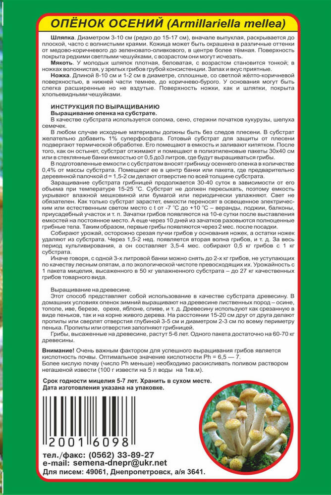 Опеньок осінній містить цінні мікроелементи, які відіграють важливу роль у кровотворенні, так, 50 г опеньків задовольняють добову потребу організму в цинку і міді.