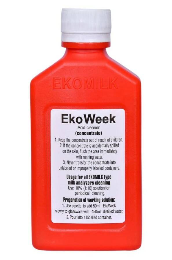 Розчин Ekoweek являє собою миючий концентрат на основі кислоти і призначений для регулярного промивання (раз на тиждень) аналізаторів молока.