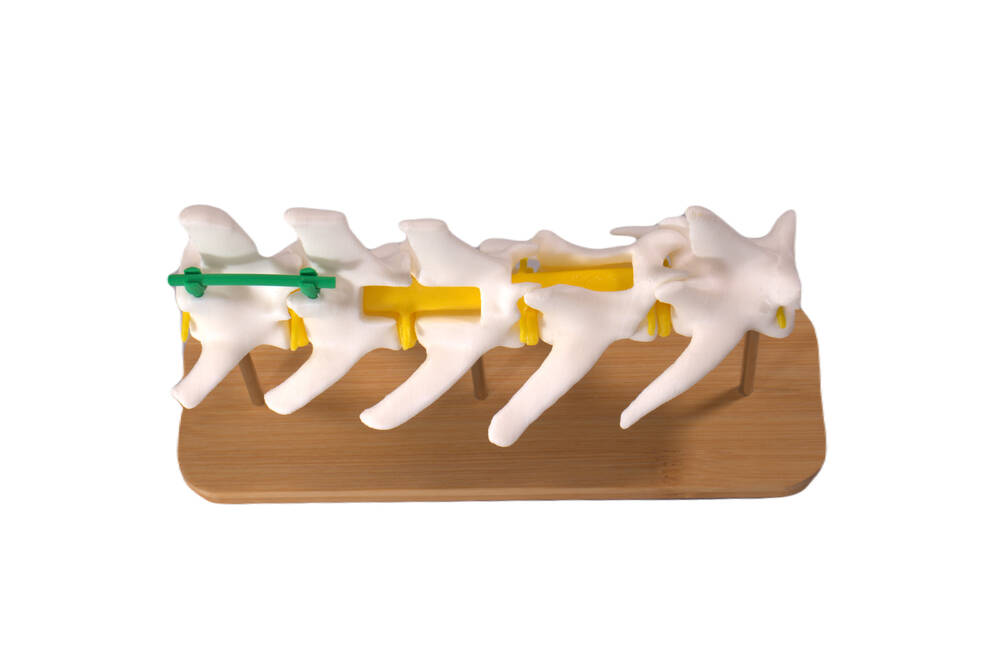 Ця 3D-модель поперекового відділу хребта собаки у натуральну величину (1:1) є цінним інструментом для ветеринарів, студентів та всіх, хто цікавиться анатомією та хірургією хребта.